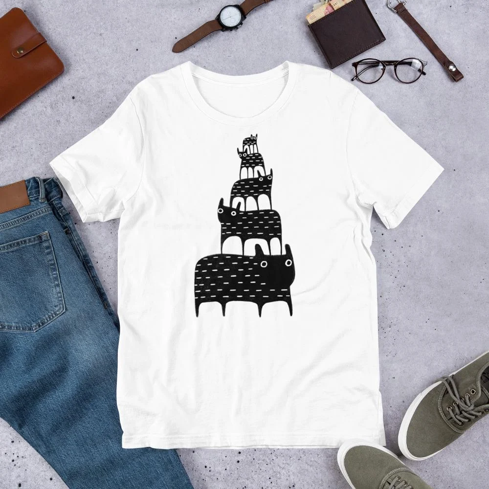 The Capybara Stack Guinea Pig Print Funny Gift T-shirt stands out with a unique, humorous motif of a stacked animal tower.
